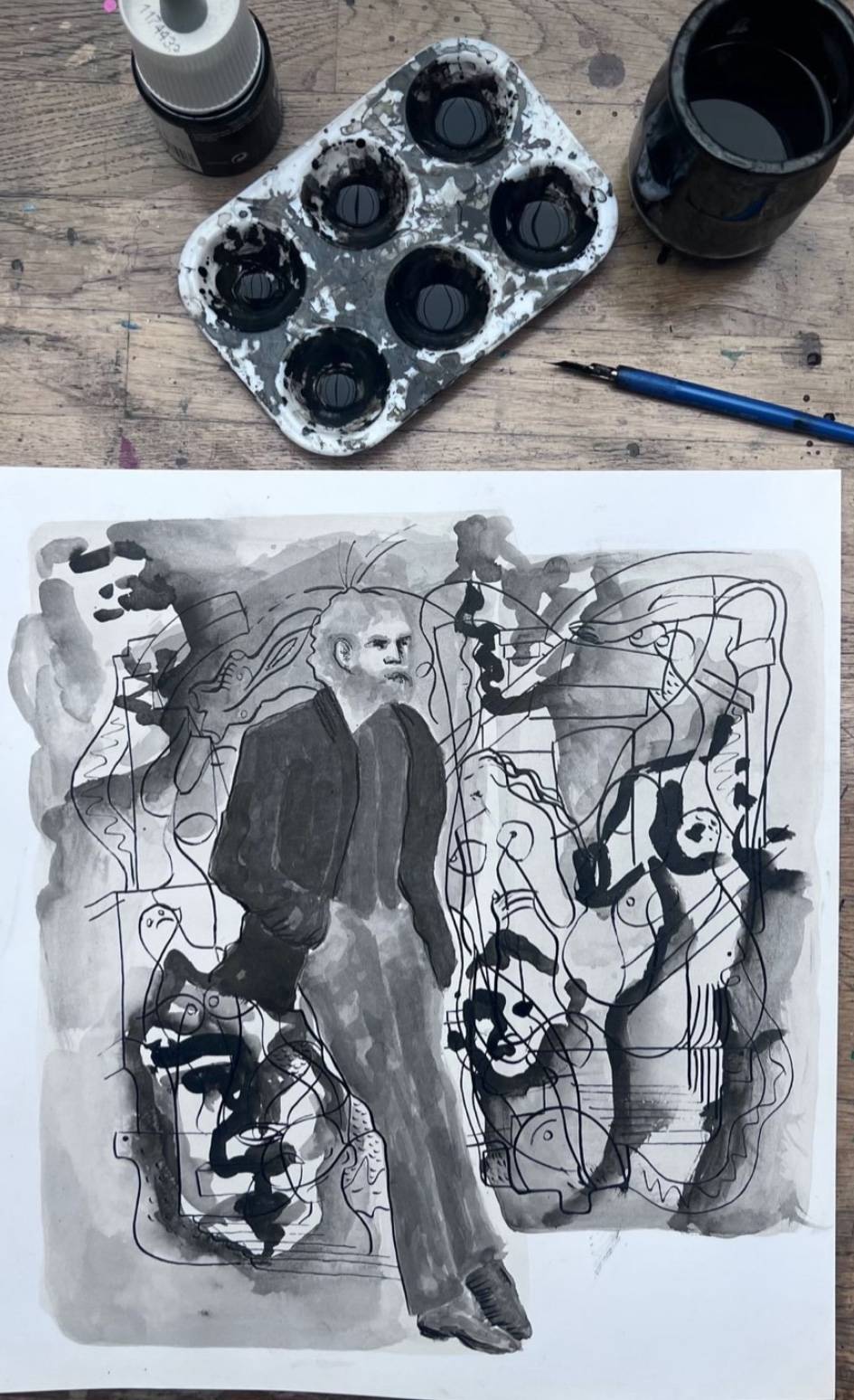 On peut également combiner l’encre de Chine avec d’autres médiums, comme l’aquarelle ou le crayon, pour enrichir les effets.