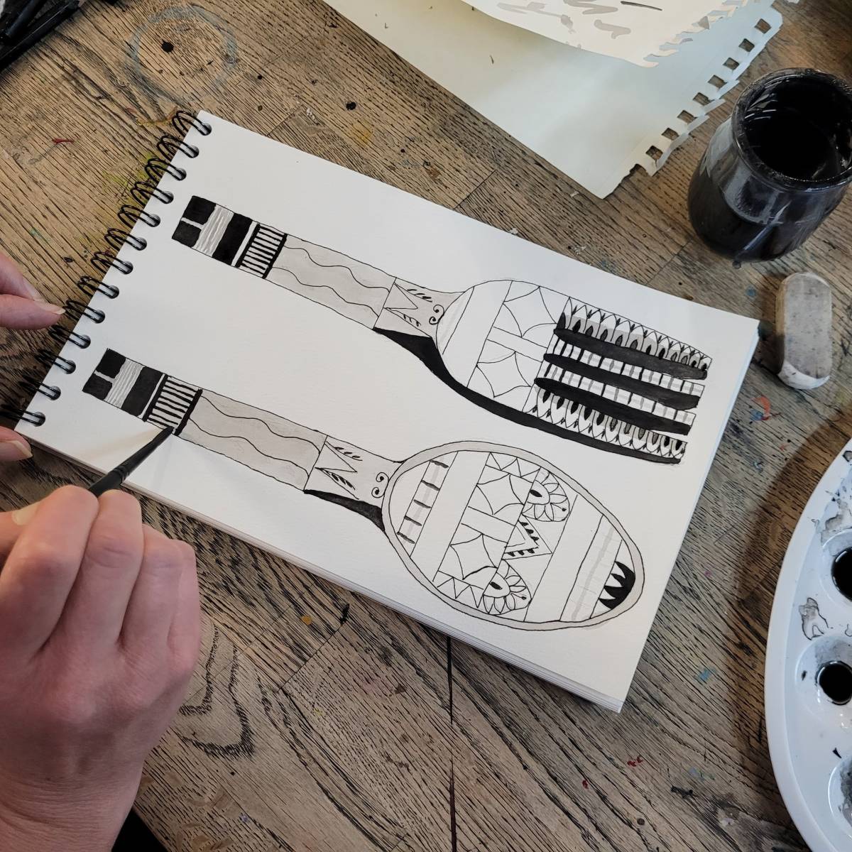 L’encre est particulièrement adaptée à l’illustration, au dessin d’observation, au croquis urbain ou à l’abstraction graphique.